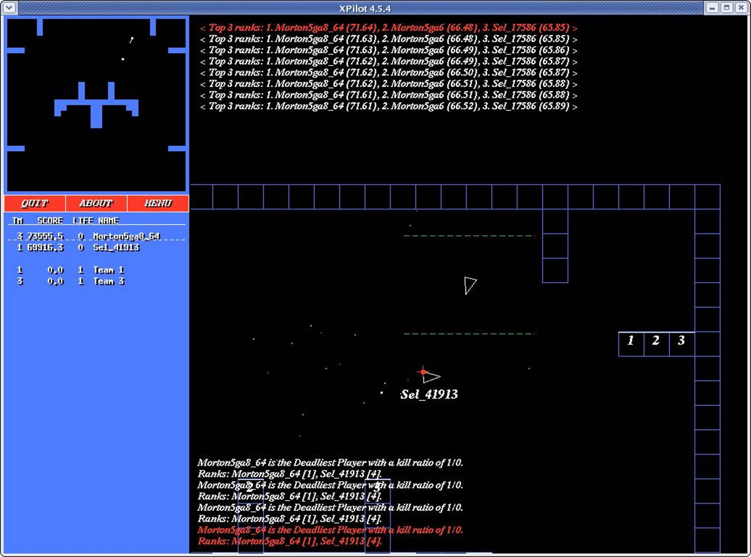 Xpilot is an online computer game that models space combatants in a 2D environment.